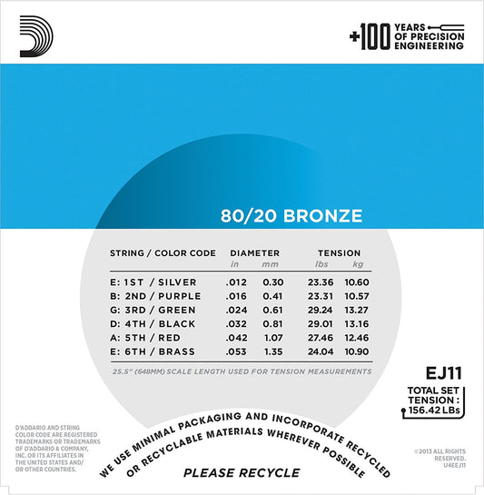 D'addario EJ13 Acoustic Guitar Strings - Custom Light